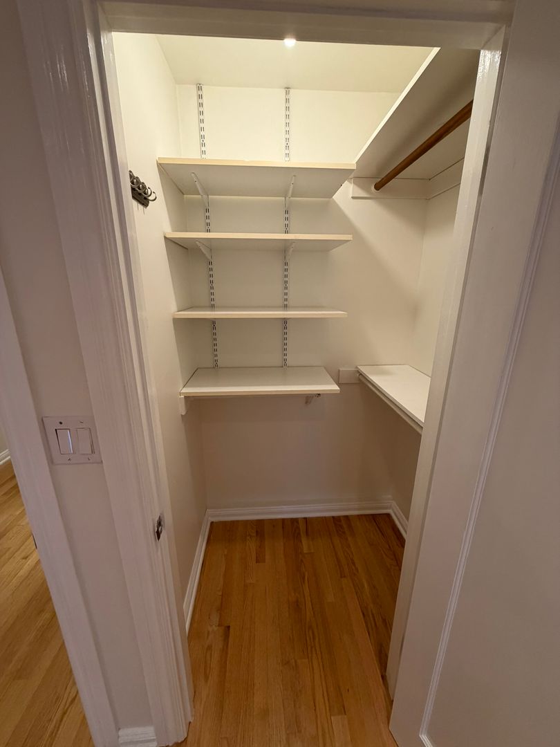 The unit has a hardwood floor. It is fully insulated (walls, ceiling, floor), so it is warm in the winter and cool in the summer. All of the walls are new sheet rock, with new wood trim throughout as well. The hardware is from Baldwin Brass and is top notch.